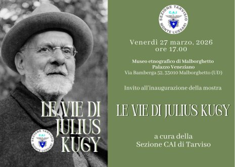 L’esposizione è dedicata alla figura di Julius Kugy, alpinista e scrittore profondamente legato alle Alpi Giulie. Il percorso racconta il suo rapporto con la montagna e con il territorio, mettendo in luce le passioni che ne hanno segnato la formazione – dalla musica alla botanica fino alla scrittura – e il legame con luoghi significativi come Valbruna, punto di partenza di numerose ascensioni e luogo di incontro con importanti guide alpine.
